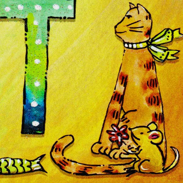 綺麗色で描かれたねこ