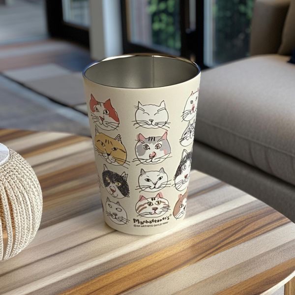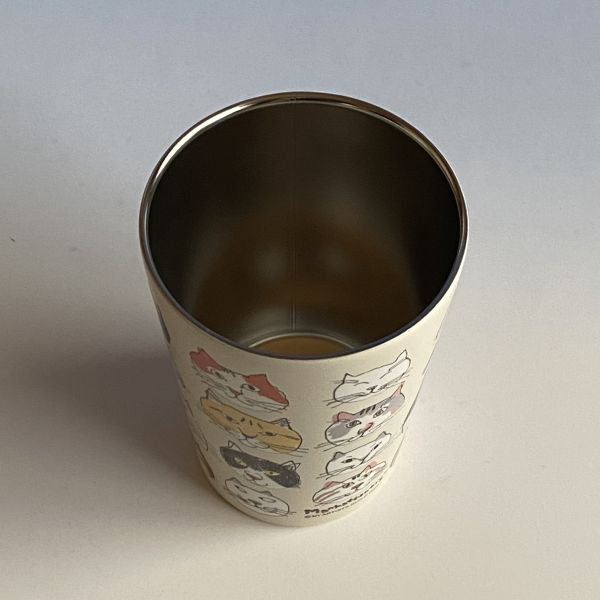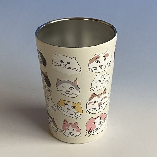 | 真空二重構造ステンレスタンブラー 氷を入れても周りに水滴がつかないので、デスクの上でも安心ニャ♪ コンビニのコーヒーカップもそのまま入るので、ドリンクホルダーとしてもつかえます ![]() いろんな猫ちゃんのかわいいお顔が並んだ ほっこり、楽しいイラストです ![]() |